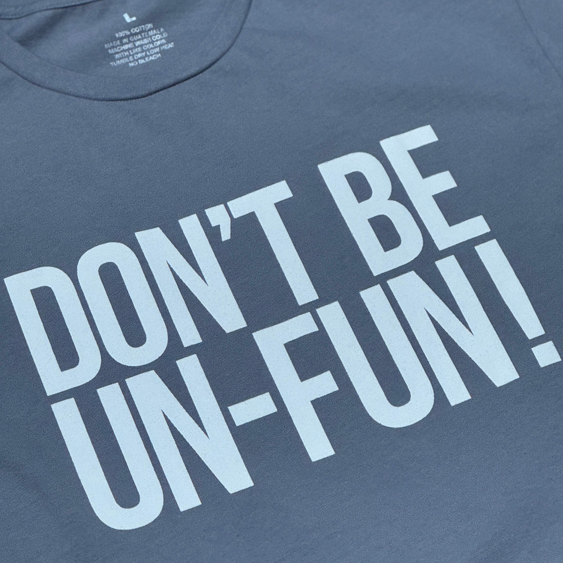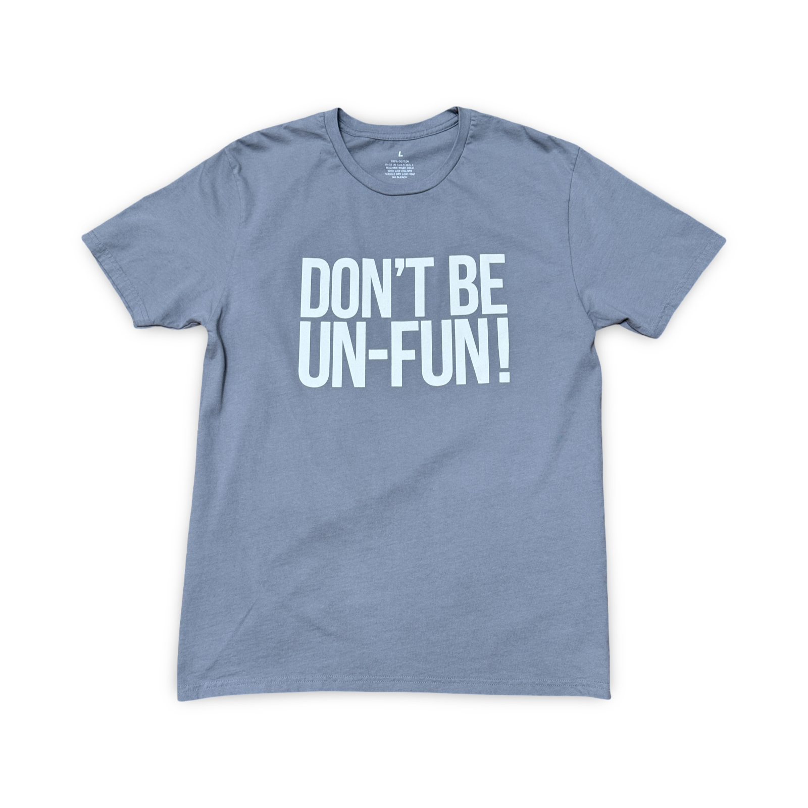 # Don't Be Un-Fun ! Tee Life's too short for boring basics. This tee delivers comfort without compromise—premium fabric that moves with you, a fit that works for any occasion, and a message that says you've got personality. Whether you're heading out or staying in, wear something that reflects your vibe. Because fun isn't optional, it's essential.100% Screen print front and back graphic.